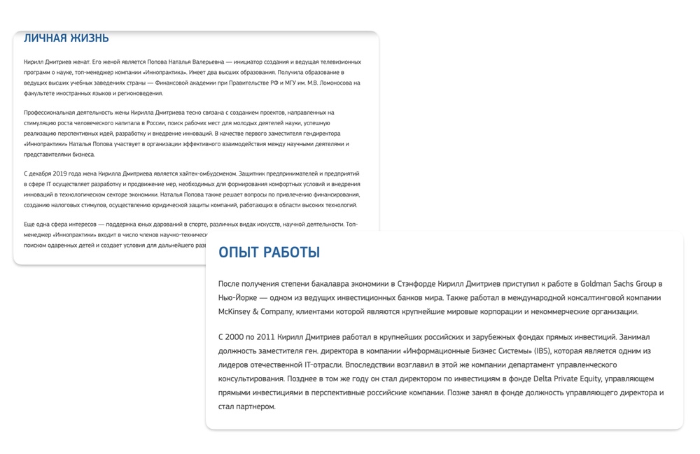 Всё на самом деле очень просто, и любой из вас может сам по открытым источникам изучить эту историю и найти всё то же самое. Несмотря на то что всю свою карьеру Кирилл Дмитриев был исключительно скрытным и непубличным чиновником, небольшая часть его рабочей биографии всё же стала достоянием общественности.