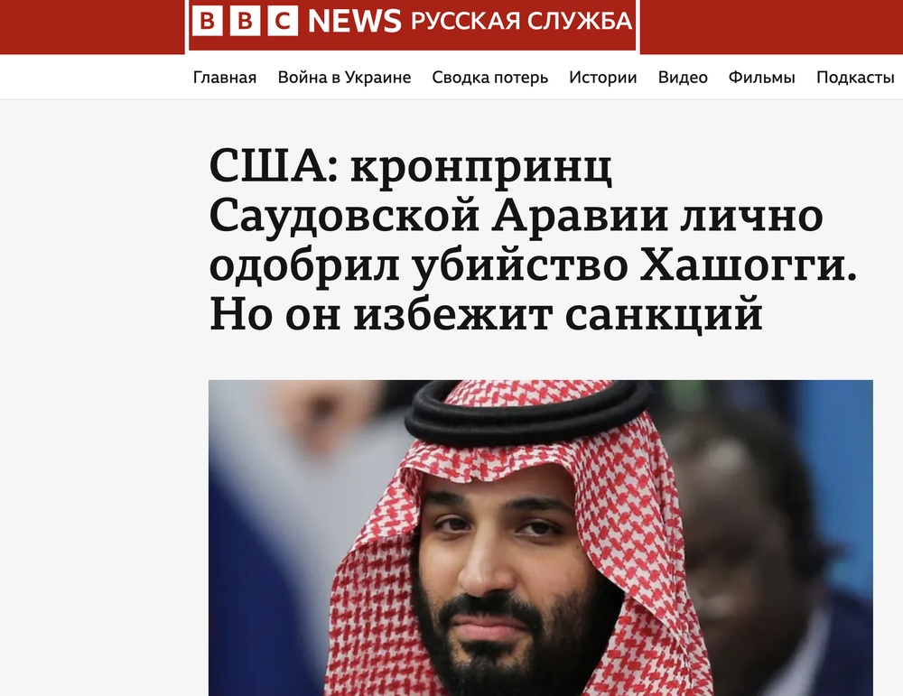 Ну и почетный орден тебе на грудь вешает человек, заказавший зверское убийство журналиста, который его критиковал — Джамаля Хашогги заманили в посольство Саудовской Аравии в Турции, заперли, жестоко убили, расчленили и вынесли по кусочкам. А сам наследный принц, друг Дмитриева, в прямом эфире получал отчеты.