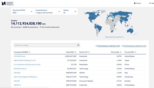Давайте на конкретном примере разберем, что не так. Сначала посмотрим сайт норвежского суверенного инвест фонда, куда складывается сверхприбыль от продажи нефти (тут та же самая логика, что и в РФПИ). Нам сразу предлагают ознакомиться — сколько денег норвежцев было вложено в акции, сколько в недвижимость, в какие компании и так далее.