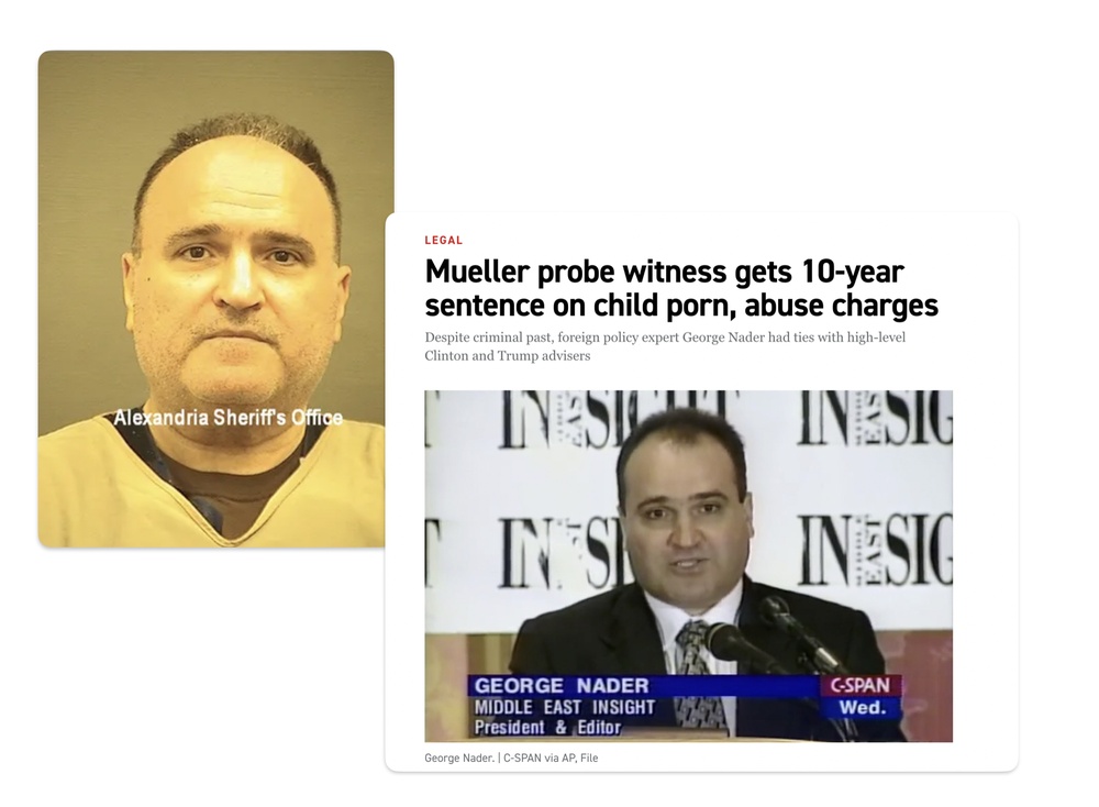 Биография у него более чем занятная: советник президента Арабских Эмиратов, шейха Мухаммеда бин Заида, неофициальный советник шейха Мухаммеда бин Сальмана, главы Саудовской Аравии. Нейдера описывают как человека, имеющего доступ к ближневосточным элитам, тайного дипломата, консультанта и лоббиста в этом регионе.