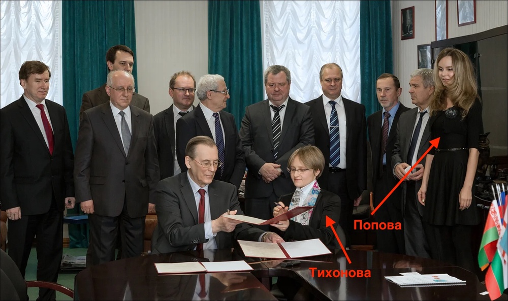 В этом же материале появляется и Попова, она представлена как заместительница Тихоновой.
