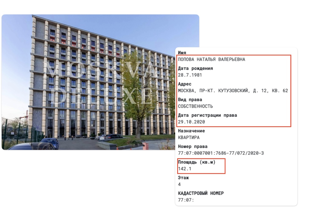 В модном новеньком ЖК «Кутузовский 12» в 2020 году Попова купила 142 метровую квартиру за 213 миллионов.