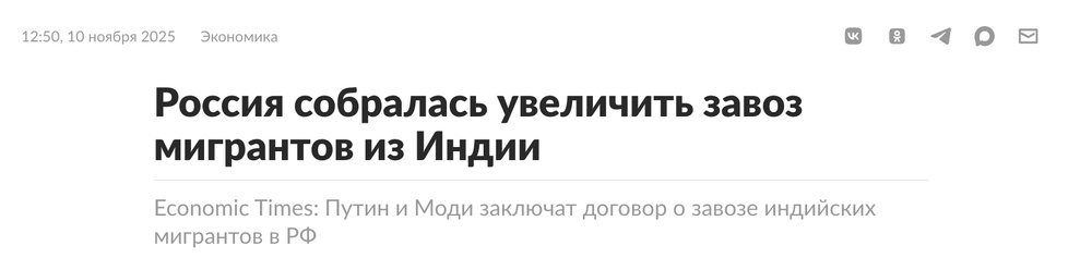 Но при этом люди продолжают приезжать, потому что работать некому. Собянин говорит: нет рабочих рук, Греф говорит: нужен миллион новых мигрантов, Путин пробует массово завезти их из Индии и предлагает гражданство за участие в СВО. Это абсолютный хаос, бардак и ситуация, которая очень давно вышла из-под какого-либо контроля.