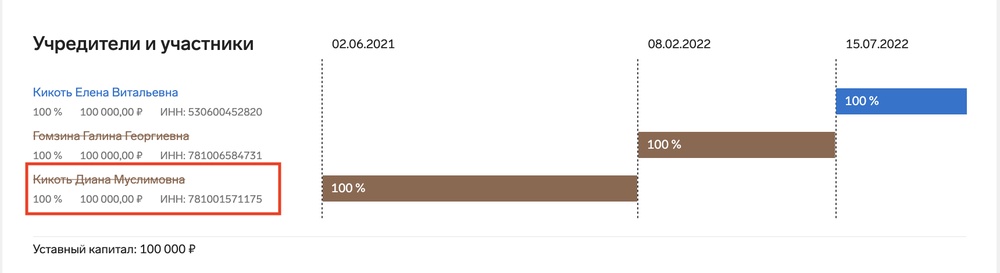 Получается, что есть бизнес, который сначала оформляют на одну супругу, потом после развода — на маму, а потом — на новую жену. Что единственное связывает этих трёх женщин? Андрей Кикоть. Это его фирмы. Чиновникам заниматься бизнесом нельзя, поэтому он просто оформляет свои активы на родственниц.