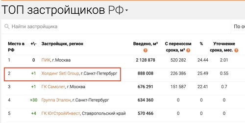 Каждый четвертый квадратный метр, введенный в эксплуатацию был построен группой компаний Сэтл. Потом они немного сдали позиции, но прямо сейчас у них 63 активных стройки в Петербурге, это прямо гигантская компания.