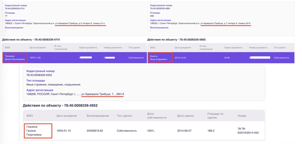 Во владельцах встречается и Галина Гомзина.