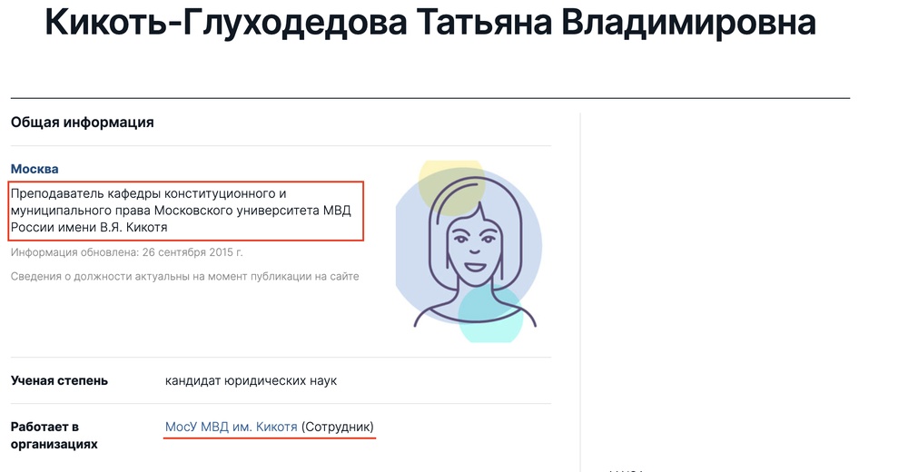 Она тоже получает зарплату из бюджета, работает в Московском университете МВД имени их отца, Владимира Кикотя.
