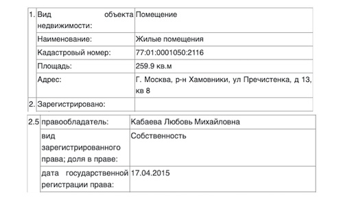Сегодня на её имя записана недвижимость в Москве, Санкт-Петербурге и Ялте на общую сумму 340 млн рублей. Напоминаем: она — жена чиновника, всю жизнь проработавшего в органах МВД, поэтому объяснить такое количество унаследованной ей собственности достаточно проблематично.