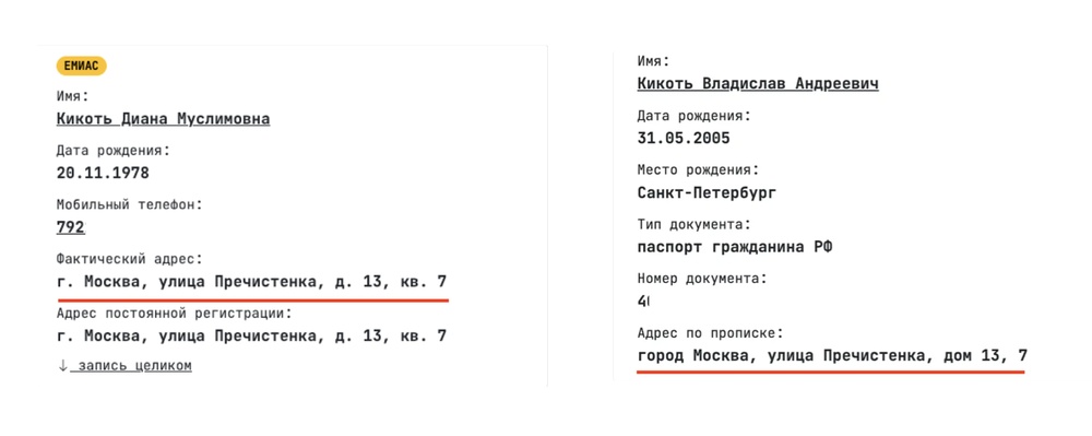 Кикоть там арендует квартиру 286 квадратных метро, этот адрес фигурирует в многочисленных утечках данных родственников Кикотя — его бывшей жены и сына.