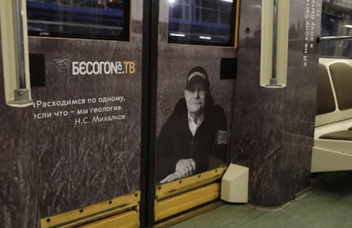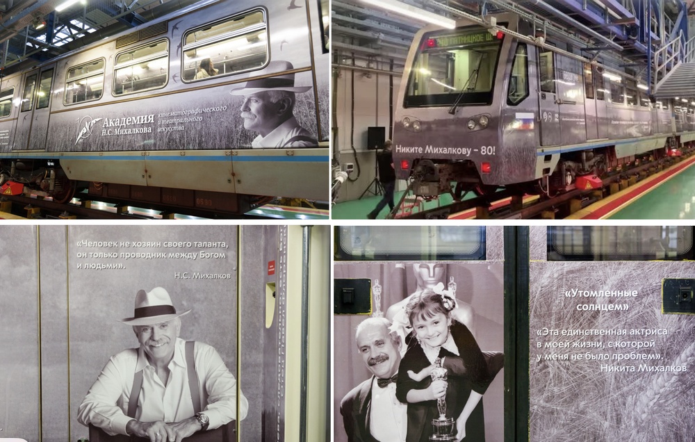 Даже в московском метро укрыться от Михалкова было невозможно. В его честь московские власти запустили целый именной поезд Михалкова, облепленный кадрами из фильмов и цитатами.