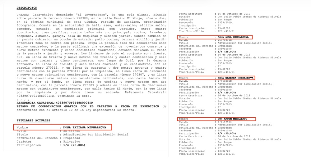 Итого — 4 квартиры в Испании, такие покупки «во вражеской Европе» уже сложнее списать на какое-то недоразумение. А окончательно невозможным это делает то, что у Михалковых в Испании есть еще и гигантская вилла. Она тоже никуда не делась, она не продана, не арестована. Патриот Михалков мог бы избавиться от нее в любую минуту, продать ее можно даже не приезжая в Испанию.