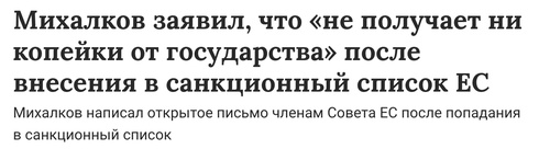 Удивительная ирония судьбы, конечно. Даже во времена советского союза, железного занавеса, пока вся страна и мечтать не могла о поездках зарубеж, у номенклатурного Михалкова была возможность мотаться по Европе и всему миру. А сейчас у него такой возможности нет.
