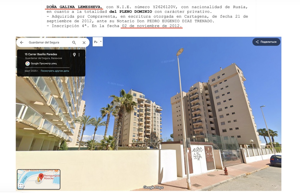 В процессе отстаивания традиционных (а скорее логистических) ценностей, Никита Сергеевич Михалков поселил свою вторую семью рядом с первой. В 20 минутах от дома в Торревьехе, где у основной семьи Михалковых куплены 3 квартиры, мы обнаружили квартиру любовницы Михалкова. Мария Лемешева (по паспорту она Галина) стала собственницей 115-метровых апартаментов в 2012 году — через год после рождения дочери.