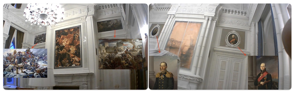 Масштаб этой стройки сложно осознать. Он сопоставим со строительством скорее города, а не поместья или дворца. А еще же отделка нужна, и тоже все должно быть под стать хозяину. Вот просто один пример: гостиные комнаты во дворце Владимира Путина. Одна с военной тематикой, другая — с морской.