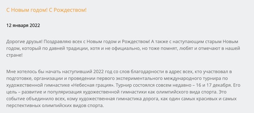 Чем занимается фонд Алины Кабаевой понять достаточно сложно. Последняя новость на их сайте датирована 12 января 2022 — Алина Кабаева поздравляет всех с Новым годом и Рождеством.