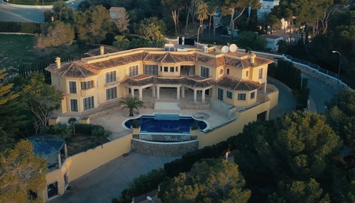 Мы пролетаем над шикарной виллой российского коррупционера на Пальма де Майорке , и что это тут у нас? По участку ходят человек 15 не меньше, все они одинаково одеты, что происходит?